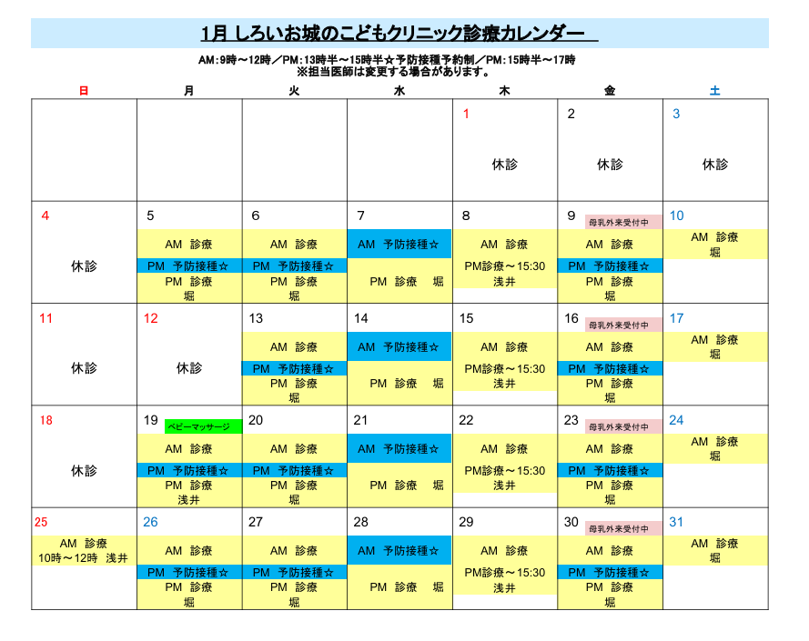 【1月診療カレンダー】