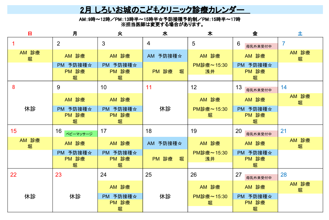 【2月診療カレンダー】