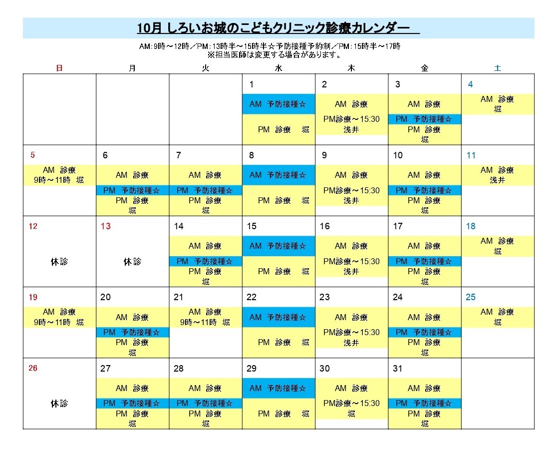 ●:一般診療 ★:ワクチン ▲:休日診療(不定期)