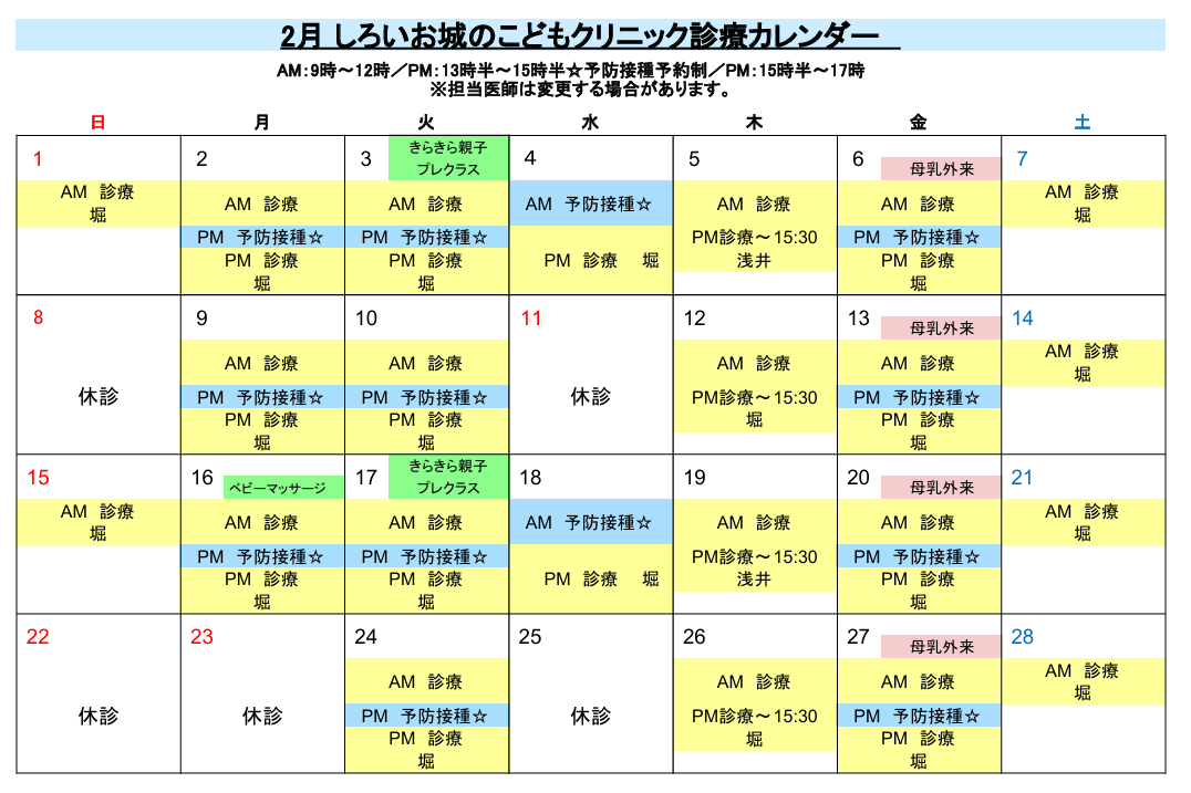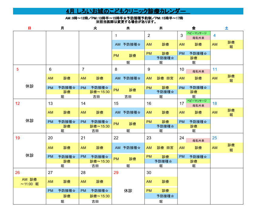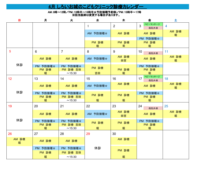 ●:一般診療 ★:ワクチン ▲:休日診療(不定期)